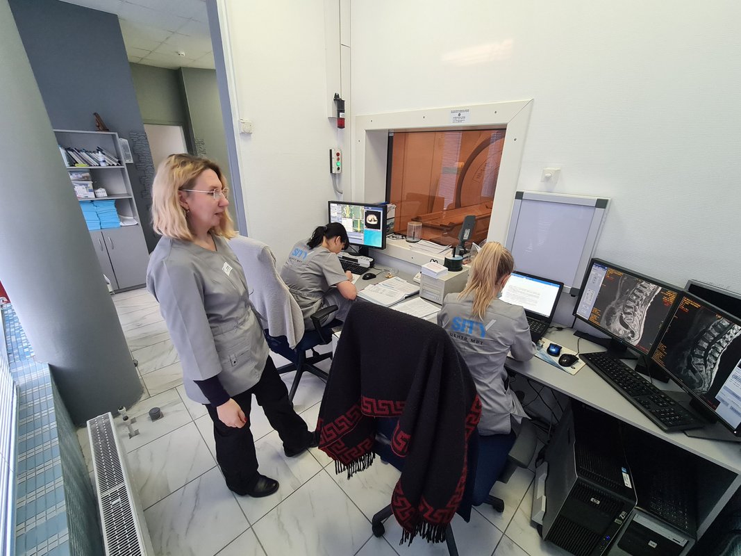 Врачи клиники занимаются проведением диагностики на новом оборудовании. Здесь можно пройти компьютерную томографию, МРТ.